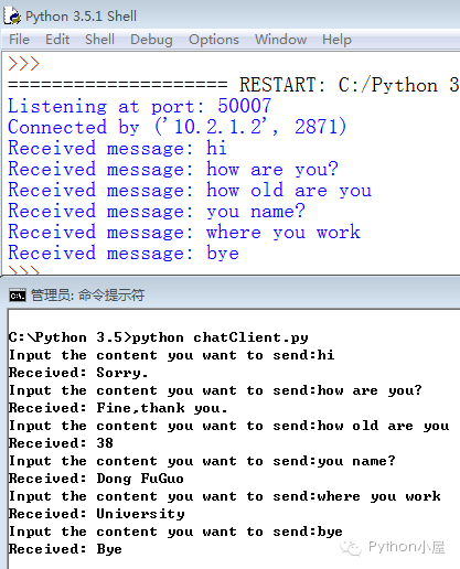 本文重点演示使用socket实现TCP通信以及字典和集合的用法,客户端发来信息之后,服务端会尽量猜测客户端要表达的真正意思,然后选择合适的内容进行回复。