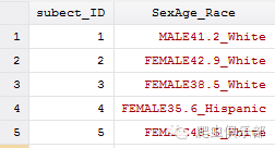 我们想把这个数据变成包含subject_ID、Sex、Age、Race四个变量的形式,所以需要把SexAge_Race这个变量拆分成Sex、Age、Race三个变量。Race这个变量很好拆分,可以用”_”作为拆分依据,但是Sex和Age两个变量之间是没有分隔符号的,那该如何拆分呢?我们将采用两种方法解决这个问题。