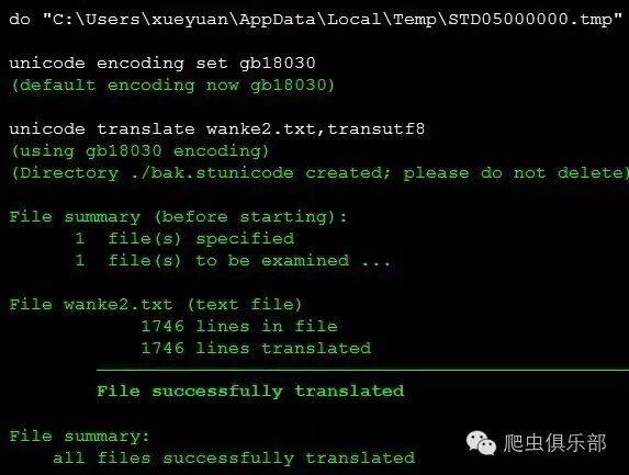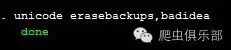 这样会使得在该路径下的”wanke2.txt”的文件不能再进行转码,倘若我们再对这个覆盖过后的文件"wanke2.txt"进行转码,需要先把这个文件夹删除,或者用unicode erasebackups这个命令,并加上badidea选项:
