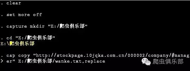 2.在Stata13中,通过copy命令,达到获取网页源代码的目的,并将其存储为”.txt”文件格式: