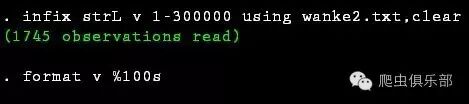 c)      方式三:infix strL v 1-300000 using wanke2.txt,clear
