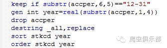 接下来就是常规的数据处理了,保存需要的数据、生成需要的变量、把字符型变量变成数值型变量、排序,这样,我们需要的数据基本得到了。