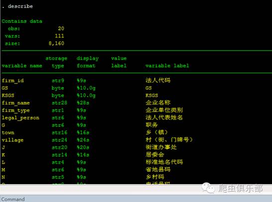 细心的读者可能会发现,在Stata13平台下,当加入firstrow这一个option之后,凡是中文的,变量名为A,B,C,D…,如果是英文,则会直接作为变量名。接下来,由于ABCD这种变量名实在是不利于后续处理,我们需要给这些变量重命名,这里就要用到variable label这个信息,代码片段如下:
