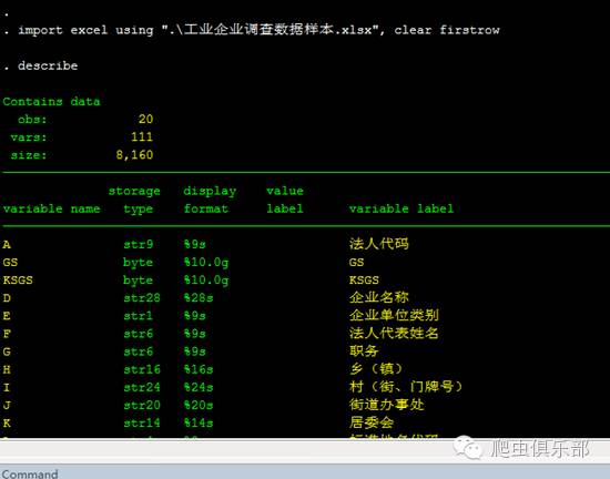 如果在Stata14平台下运行,也没有问题,只是在第一步用import 读入Excel文件时,变量名是中文,这是因为从Stata14提供了对Unicode的支持,中文也可以作为变量名出现。
