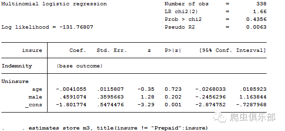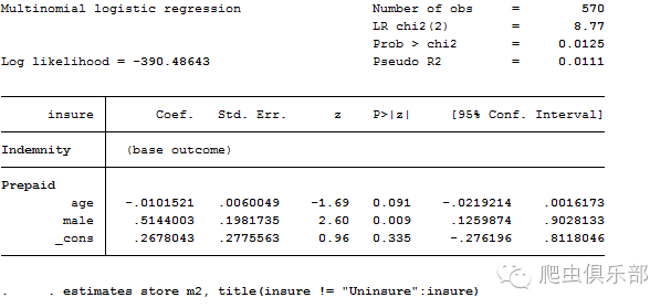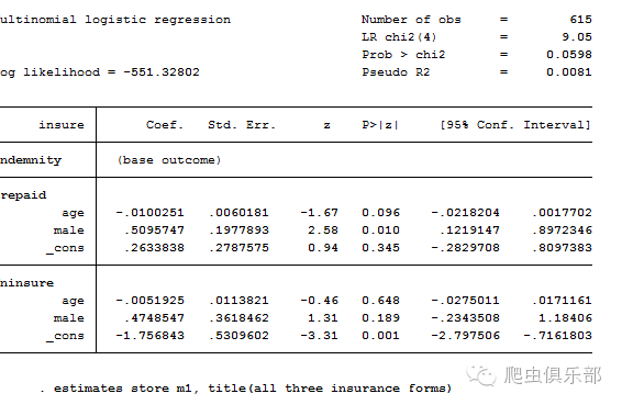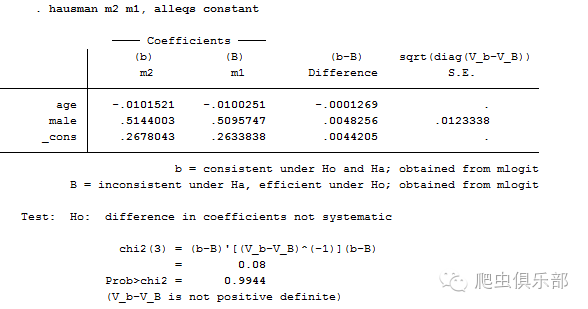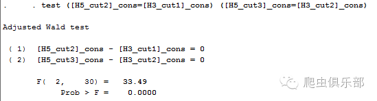 注意原假设(H0):系数不存在显著性差异,如果拒绝原假设则认为系数是存在明显差异的。由结果可知m1与m2是不存在明显的差异。