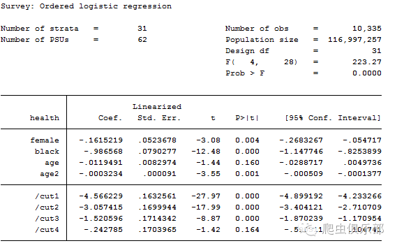 . svyset psuid [pw=finalwgt], strata(stratid) //suest之前的svyset处理(参见help)