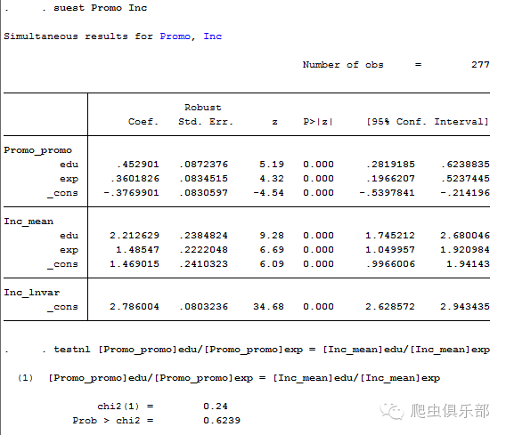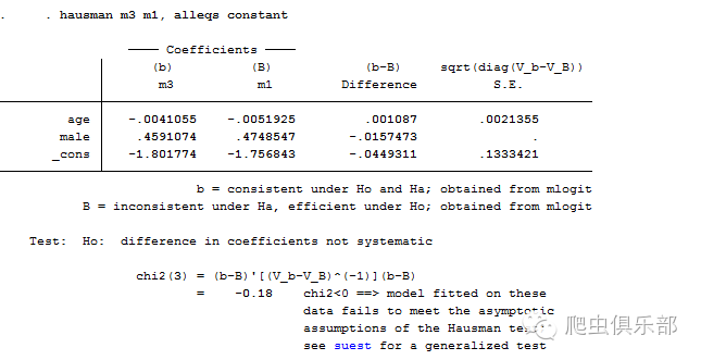 Example 1: A Hausman test(注意其与suest的区别,Description中有介绍哦)