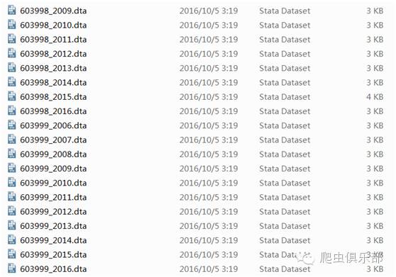 到这里,我们终于拿下了所有股票代码,并且正如江财付童鞋想要的那样,按照stkcd(股票代码)和year(年份)拆分、分别保存,并命名为“股票代码_年份”,我们截取一小块儿如下图(图5、图6):