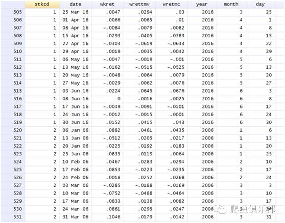 如果先按照一个stkcd和year拆分并保存的话(比如stkcd为1,year为2006),很容易想到用如下命令: