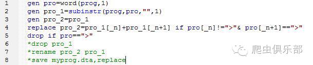 在Stata中真的需要用分列命令来实现该功能么?如果真这么做,Too young,too naive.其实只需要取出每个观测值的第一个单词(为啥不是提取字符,自己想一想),然后把第一个单词的位置替换成空值即可。一言不合,先上命令: