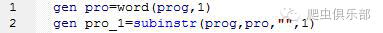 简要解释解释一下,利用word函数取出prog变量中的第一个单词,命名为pro;然后利用subinstr函数将prog变量中的第一个单词的位置替换为空值,生成变量pro_1,结果如图所示: