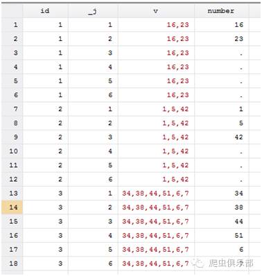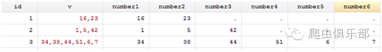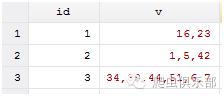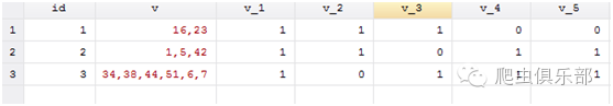 然后我们就发现了一个问题,v_1 全部都是1,但事实上,只有id=2时变量v中才是真正有1,id=1和id=3时只是因为变量v中有16和51而被错误识别。真是磨人的小妖精。也就说只要变量v里面有1,10,11,21等这些数字,变量v_1就会显示为0,这并不是我想要达到的目的,那么如何解决这个问题呢?