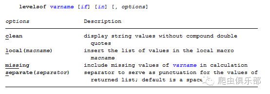 levelsof number,local(options) //把变量number 的内容赋给宏options