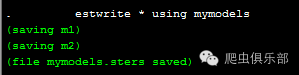 Stata返回信息,存储了两个回归的结果[m1和m2]以及一个sters文件[mymodels.sters]