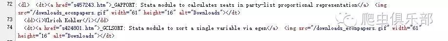 我们看到,所需要的程序名称及描述语句字段前面都有<dt><ahref=这一串字符,与其他显著不同,因而只需保留这些字段的记录即可,利用index函数把这些用<dt><a href=代号标记的记录值保存下来,命令: