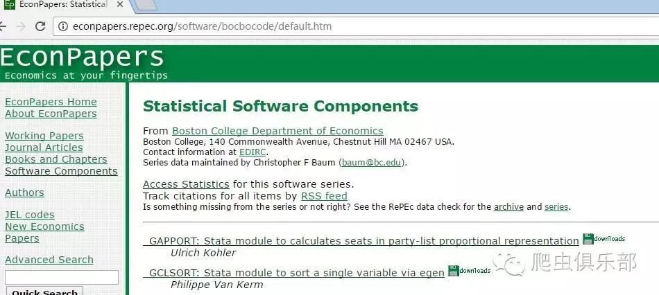 登录http://econpapers.repec.org/software/bocbocode/default.htm网站,如下所示: