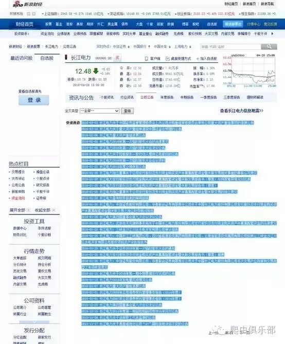 长江电力公司公告的网页如下,但是我们需要的信息只是被high light的部分: