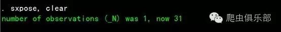 我们可以用sxpose, clear将这一行31列变量进行转置,变成一列31行的一个数据,变量名是_var1。
