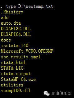可以看到这个文本文档里面有很多内容,但是我们只要中间那些内容{res}后面跟的文件夹和文件的名字。另外,“.”和“..”并不是这个路径下面的文件或文件夹的名称,需要删除掉。这时,使用subinfile命令,只需要一行命令就可以搞定了: