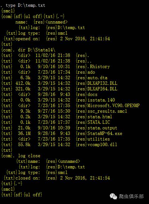 比如我们想要知道Stata14安装路径下的文件和文件夹名称并将其保存在一个文本文档中,我们可以使用dir命令来查看该路径下面的文件夹和文件的名字,使用log命令将窗口显示的内容放在文本文档里面。