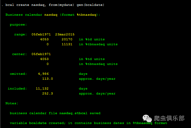 出现了与business calendar(一)中一样的问题,接下来我们就可以直接用bcal create命令创建business calendar,并创建business date,将其以%tbcalname的显示格式,保存在bcaldate中,具体的命令如下:
