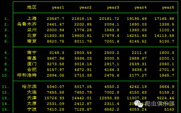 我们导入一份最近5年全国各省份国内生产总值的数据(数据来源:国家统计局),对地区进行排序,输出结果。发现下面两幅图有什么区别了吗?
