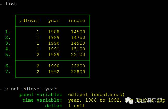 tsfill 填充数据只针对每个截面的时间变量跨度进行了填充。比如edlevel为2,时间跨度是1989到1992,时间间隔为一年,存在数据缺失,填充之后时间 变量数据就是从1989-1992,补足了1991年,但是在edlevel为1中的1988年并不会填充到edlevel为2的时间变量中。