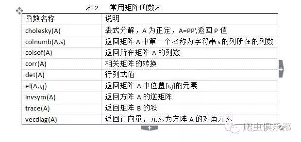 stata中还用很多矩阵函数,读者可以使用help matrix function寻找自己所需要的函数。