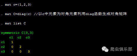 mat C=diag(c) //以c中元素为对角元素利用diag函数生成对角矩阵