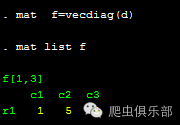 mat f=vecdiag(d) //f是个行向量故使用matrix定义