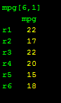 mkmat mpg //将mpg数据转换为一列矩阵