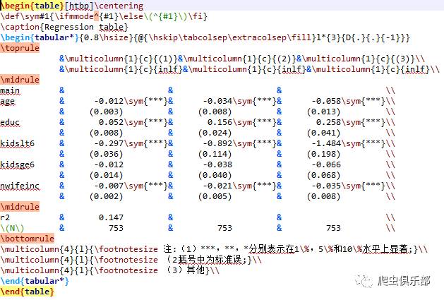 对,你木有看错,今天爬虫酱要和你分享的是LaTeX(学 术界一款流行的排版软件),不是MS word或excel。相信诸位读者都已经熟悉了Stata 回归结果导出到word或excel的步骤(体验下esttab或outreg2是不是相当easy),but如何将它插入到LaTeX?难道要自己在 Texstudio中手动输入回归结果,这是得有多想不开,想想&符号就知道有多抓狂……不过笔者之前确实那么干过,唉,说多了都是泪。