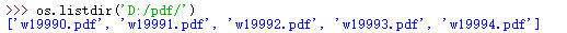接着,我们对pdf文件夹下面的所有文件进行循环,这里需要用到os模块,将所有文件名装入一个列表里面。