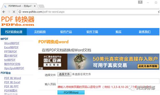 我们通过打开Google Chrome浏览器,并转到我们用来转换文件格式的网页 http://www.pdfdo.com/pdf-to-word.aspx.