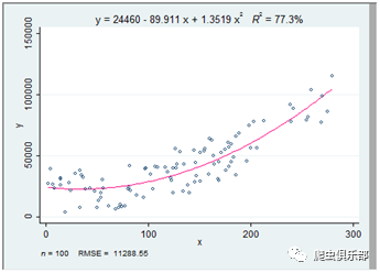 根据图形我们可以通过判定系数R^2观测二次曲线拟合的更好