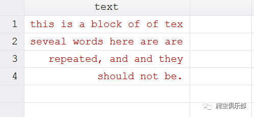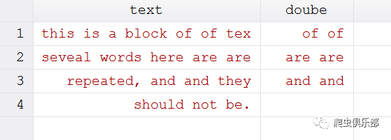 可以看到,第1、2、3行中都有重复的单词出现(of、are、and)我们可以通过正则表达式回溯引用找到这些重复的单词。