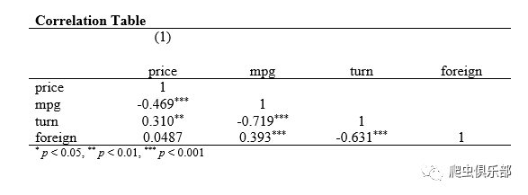 以auto数据为例说明如何将相关系数表导入到一个RTF文档中: