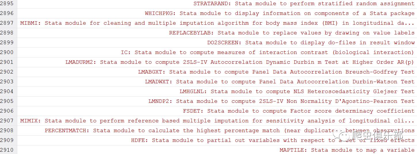 哈 喽,诸君安。在我们学习stata的过程中会接触很多命令,我们通过ssc install下载各种命令到自己的stata中,那么大家知道ssc上面到底有多少命令吗?它们又是什么呢?之前的推文中已经多次介绍到用 subinfile命令替换、保留、删除数据,今天我们用subinfile命令来爬取上传到ssc中的所有命令。