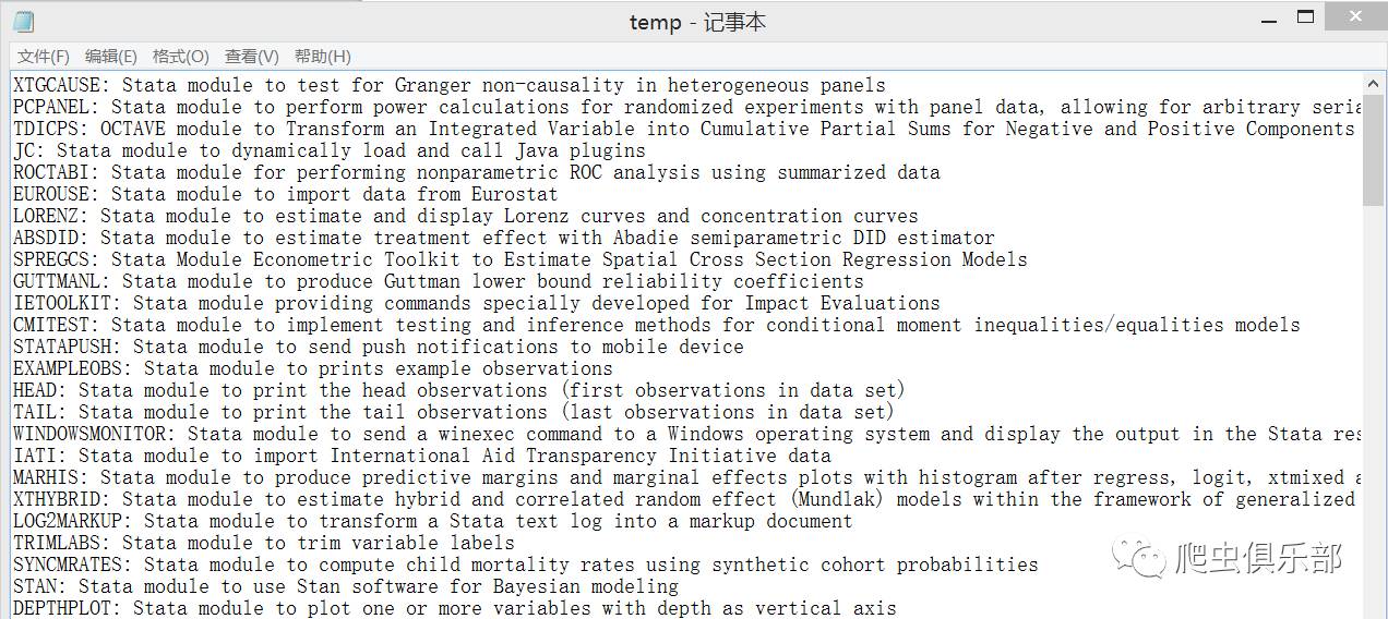 微信公众号“爬虫俱乐部”分享实用的stata命令,欢迎转载、打赏。爬虫俱乐部是由李春涛教授领导下的研究生及本科生组成的大数据分析和数据挖掘团队。