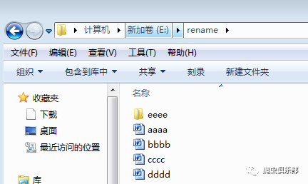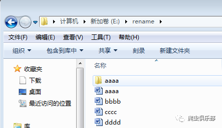 例子1:将E:\rename路径下的aaaa文件夹的文件名改为“eeee”