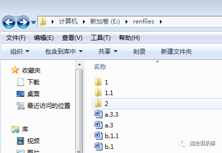 可以看到,只有E:\renfiles及其前缀为“1”的子文件夹中的文件进行了重命名,2文件夹中的文件并没有进行重命名。