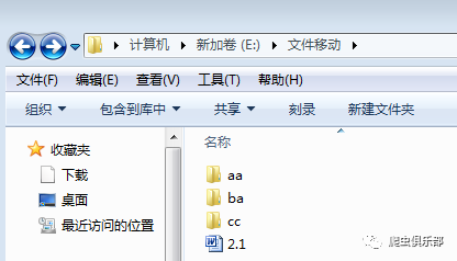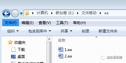 移动前“E:\文件移动\aa”路径下所有文件如下: