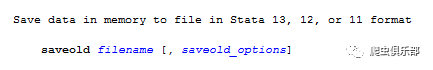 我们隆重介绍saveold命令。从字面意义上可以理解,这个命令能将以stata高版本储存的数据转化为stata低版本可使用的格式。