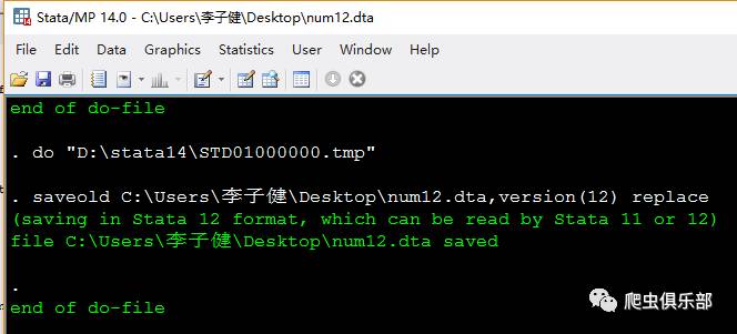 saveold C:\Users\李子健\Desktop\num12.dta,version(12) replace