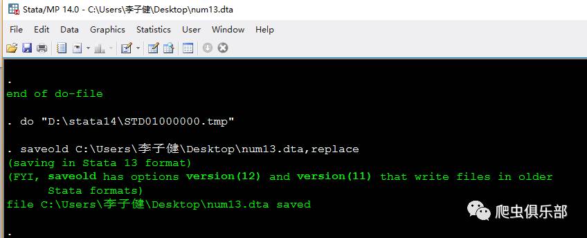 saveold C:\Users\李子健\Desktop\num13.dta,replace
