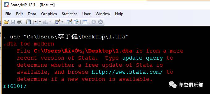 在stata14版本中可以正常打开的文件在stata13中打开后显示报错,并提示我们的文件版本过高,运用当前的stata版本无法打开。如果数据因为stata版本的问题无法传递以及使用,这就造成了学术交流的不便啦。
