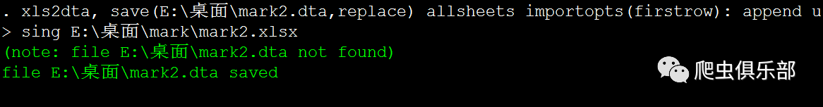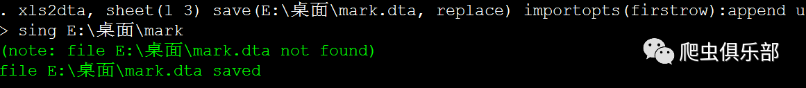 xls2dta,save(E:\桌面) allsheets:import excel using E:\桌面\mark,firstrow