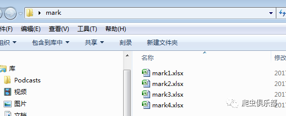 比如,爬虫君现在有4个excel文件放在E:/桌面/mark文件夹中。