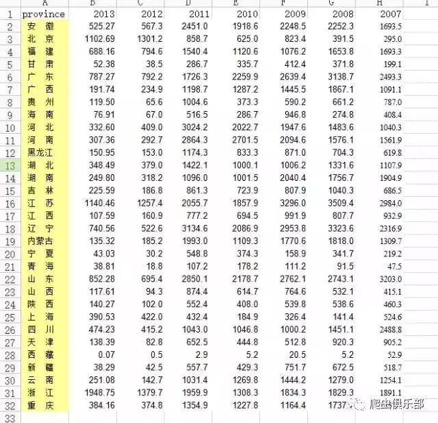 笔者有一份土地购置费的数据,原始数据存储在excel里的形式如下图所示: