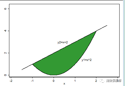 首先我们绘制出两曲线相交所围成的曲边形,具体代码如下: